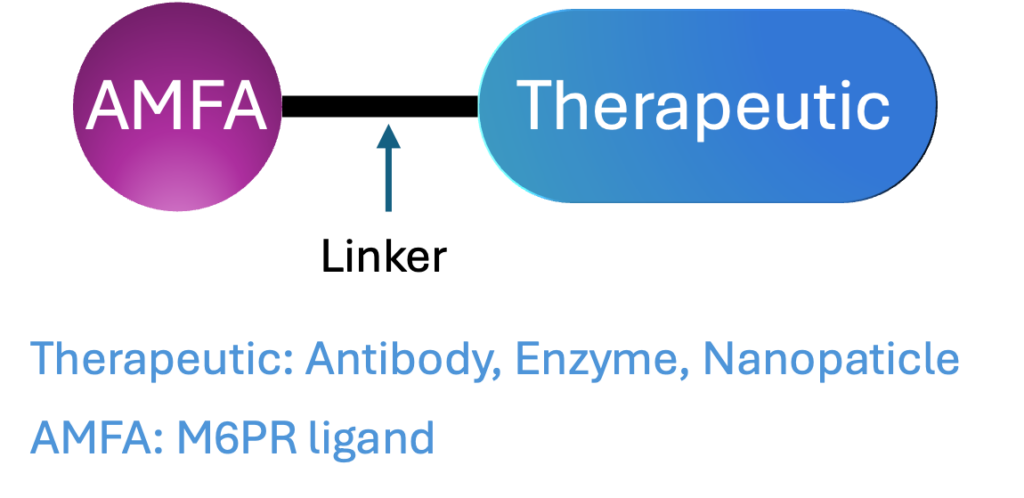 AMFA‑Therapeutics are constructs composed of an AMFA ligand that engages M6PR, linked to a therapeutic payload such as an antibody, enzyme, nanoparticle or biologic.